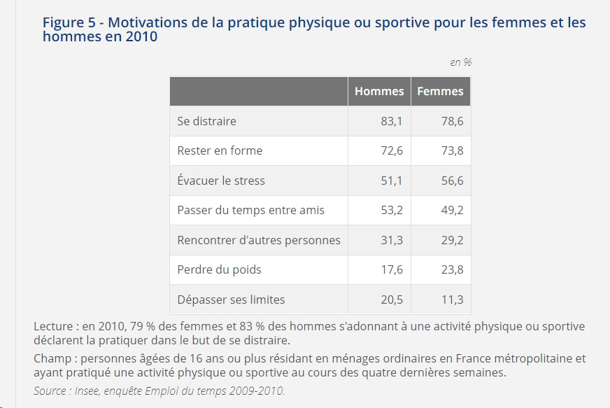 pratiques physiques ou sportives des femmes et des hommes INSEE
